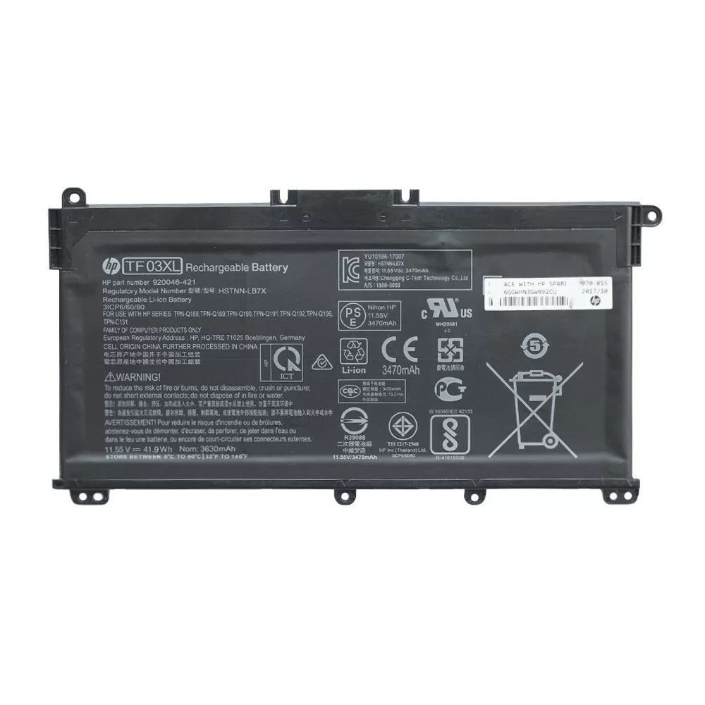 Совместимость P/N: TF03, TF03XL, HSTNN-UB7J, HSTNN-LB7X, HSTNN-LB7J, HSTNN-IB7Y, 920046-541, 920046-421, 920070-855, TPN-Q188, TPN-Q189, TPN-Q190, TPN-Q191, TPN-Q192, TPN-Q196, TPN-C131